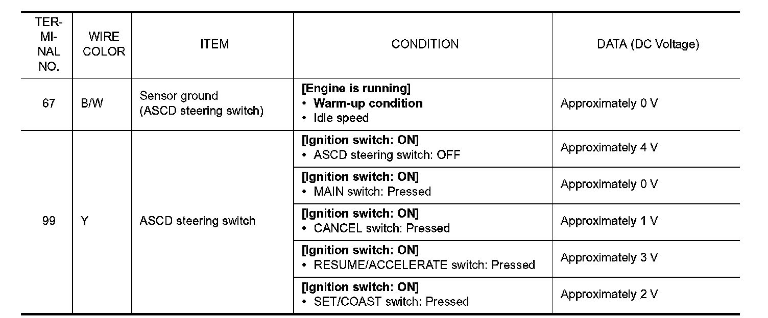 Never use ECM ground terminals when measuring input/output voltage. Doing so may result in damage to the ECM's transistor. Use a ground other than ECM terminals, such as the ground.