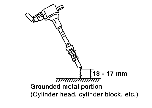 15. Fix ignition coil using a rope etc. with gap of 13 - 17 mm between the edge of the spark plug and grounded metal portion as shown in the figure.