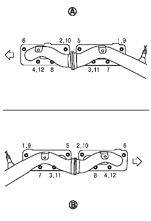Tighten mounting nuts No. 1 to 4 in two steps. The numerical order