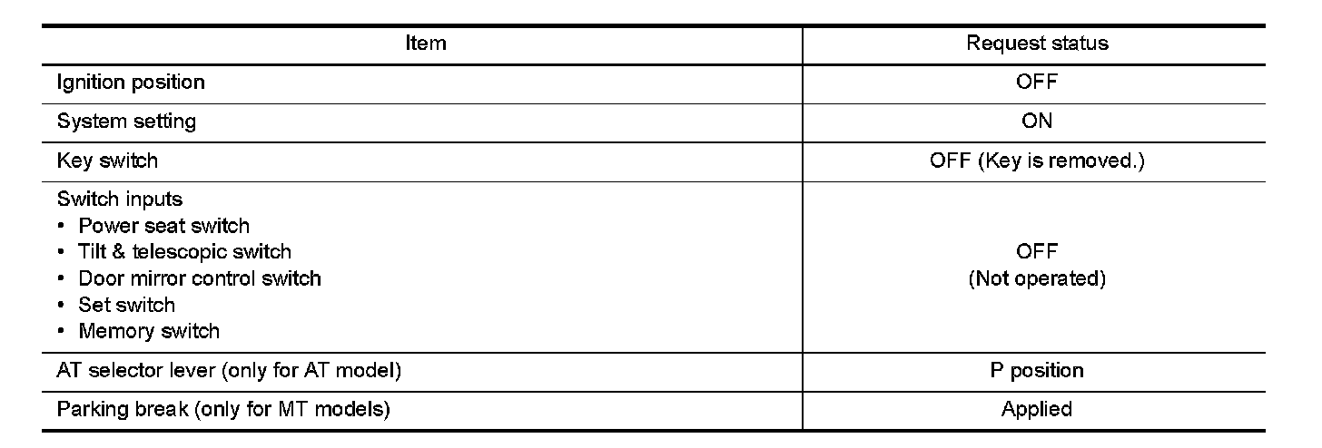 Satisfy all of the following items. The Intelligent Key interlock function is not performed if these items are not satisfied.