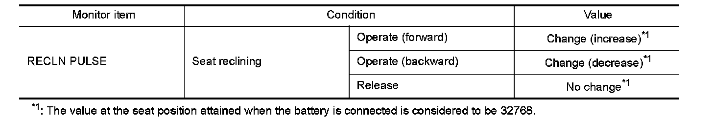 3. Check reclining sensor signal under the following conditions.