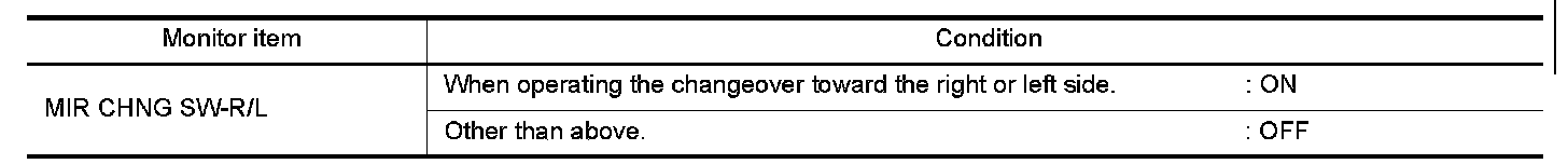 Check the operation on "MIR CHNG SW-R" or "MIR CHNG SW-L" in "DATA MONITOR" mode using CONSULT-III.