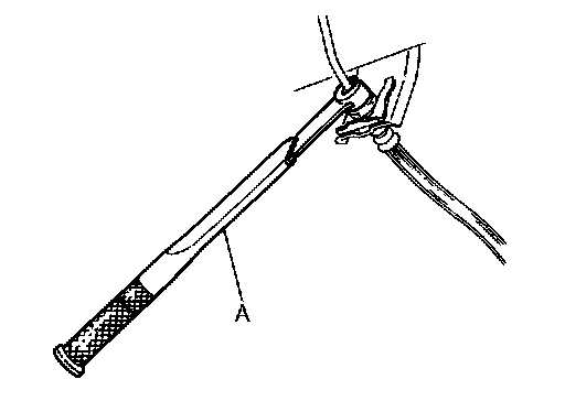 - Tighten the brake tube flare nut to the specified torque with a flare nut torque wrench (A).