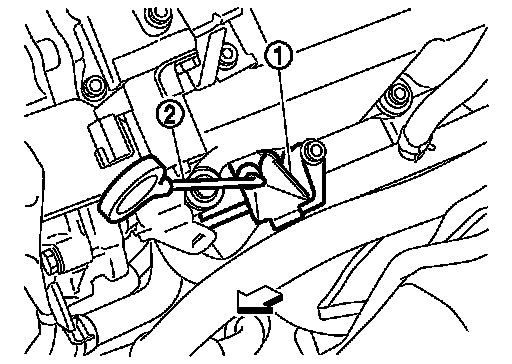 When checking the engine oil level, insert oil level gauge (2) with its tip aligned with oil level gauge guide (1).