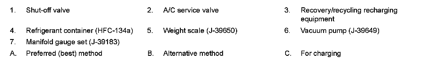 Remove HFC-134a (R-134a) from A/C system using certified service equipment meeting requirements of SAE J-2210 [HFC-134a (R-134a) recycling equipment] or J-2209 [HFC-134a (R-134a) recovery equipment]. Ventilate work area before resuming service if accidental system discharge occurs. Additional health and safety information may be obtained from refrigerant and lubricant manufacturers.