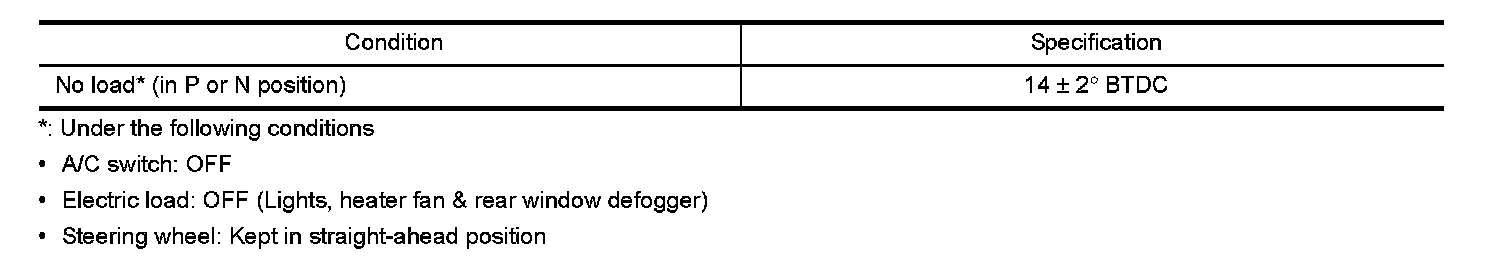 Ignition Timing: Specifications