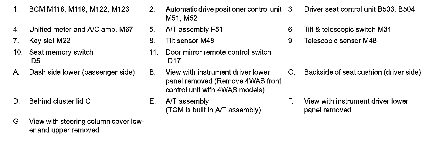 SEAT SYNCHRONIZATION FUNCTION : Component Parts Location