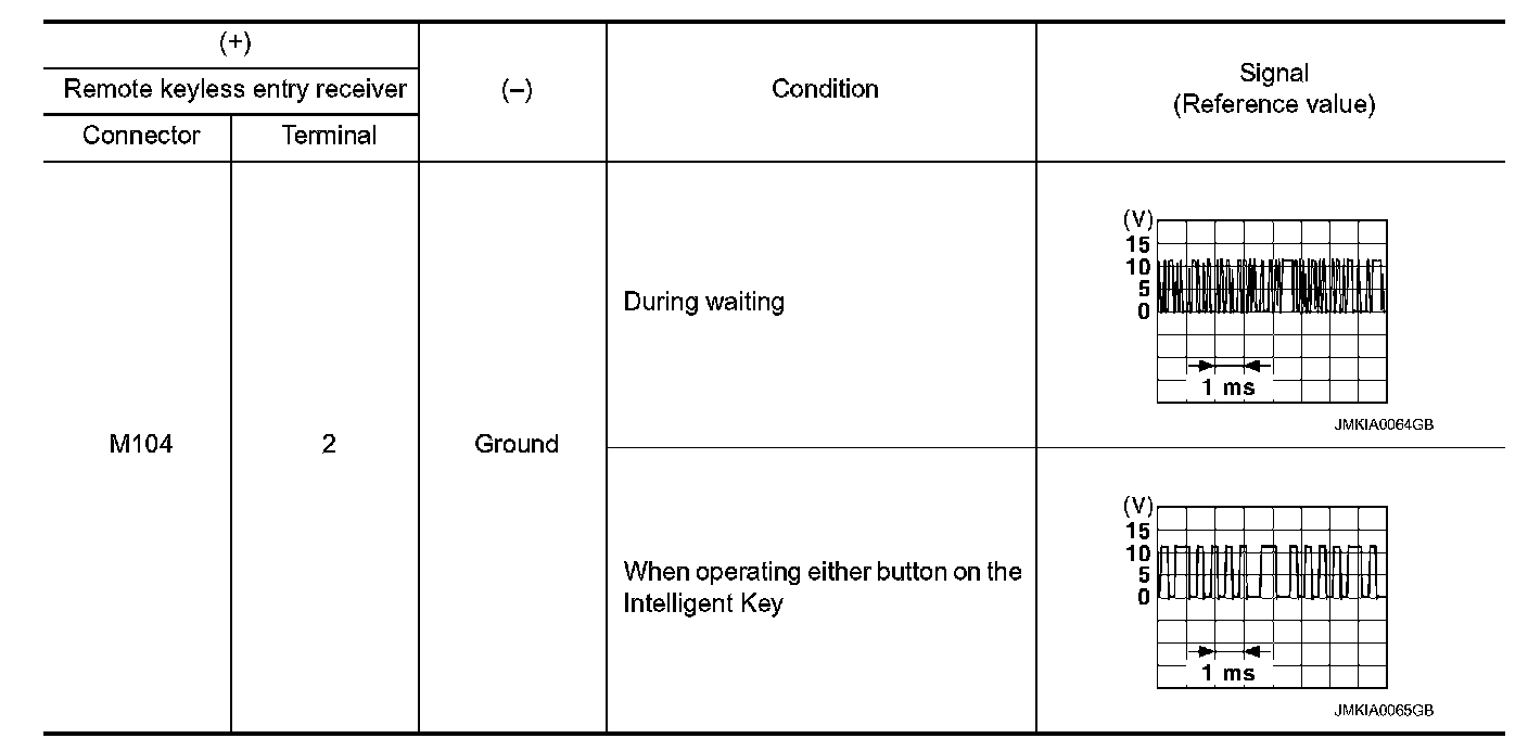 2. Check signal between remote keyless entry receiver harness connector and ground using oscilloscope.