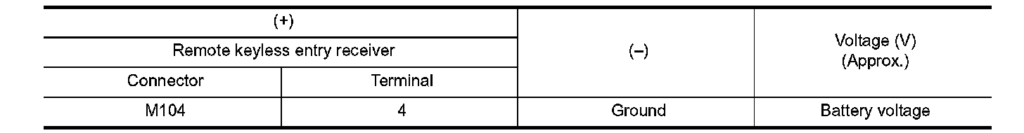 2. Check voltage between remote keyless entry receiver harness connector and ground.
