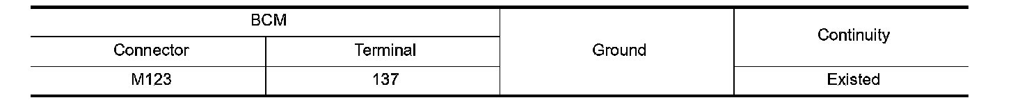 2. Check continuity between BCM harness connector and ground.