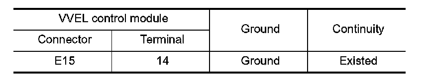 2. Check the continuity between VVEL control module harness connector and ground.