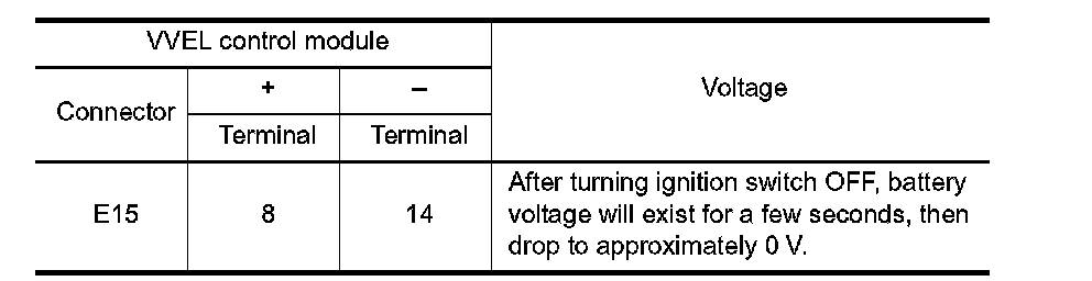 3. Check the voltage between VVEL control module harness connector and ground.