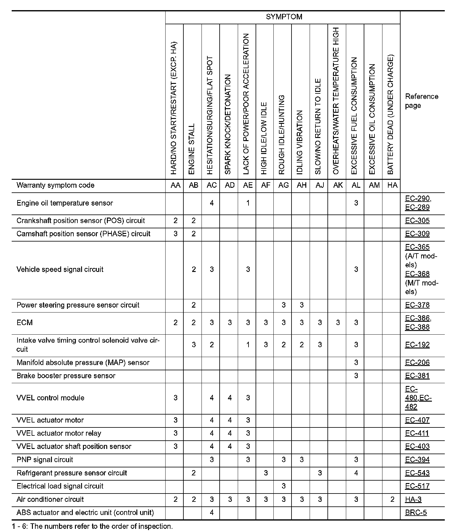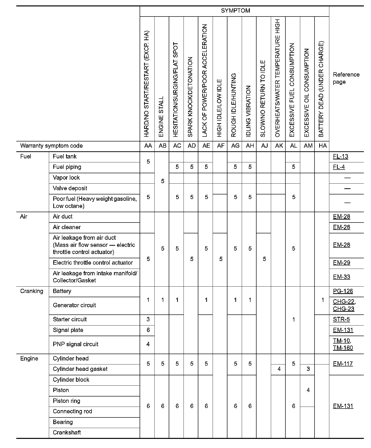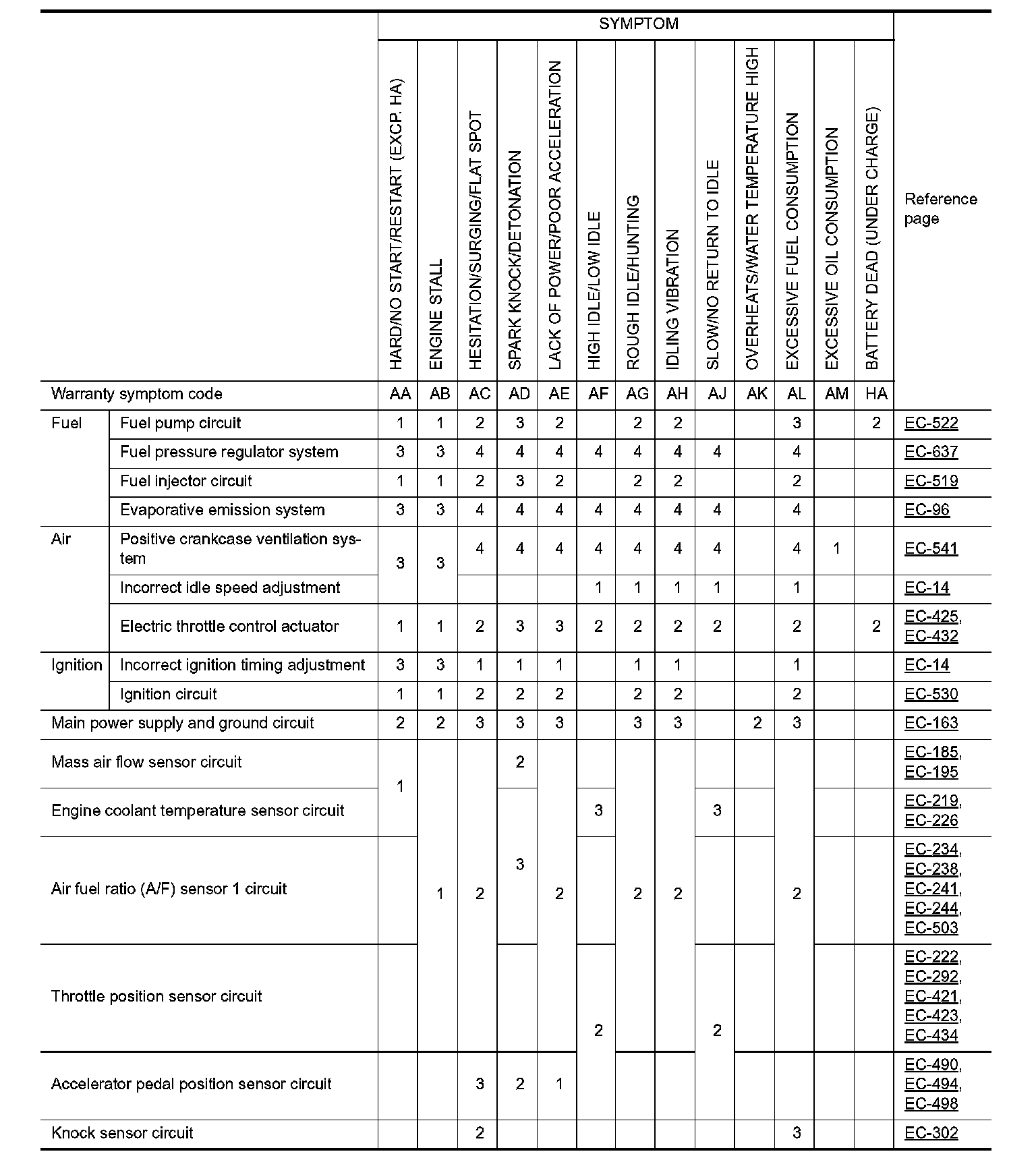 ENGINE CONTROL SYSTEM SYMPTOMS