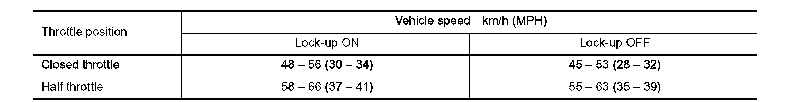 Vehicle Speed at Which Lock-up Occurs/Releases