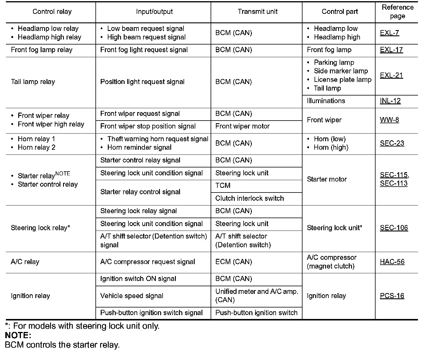 *: For models with steering lock unit only.