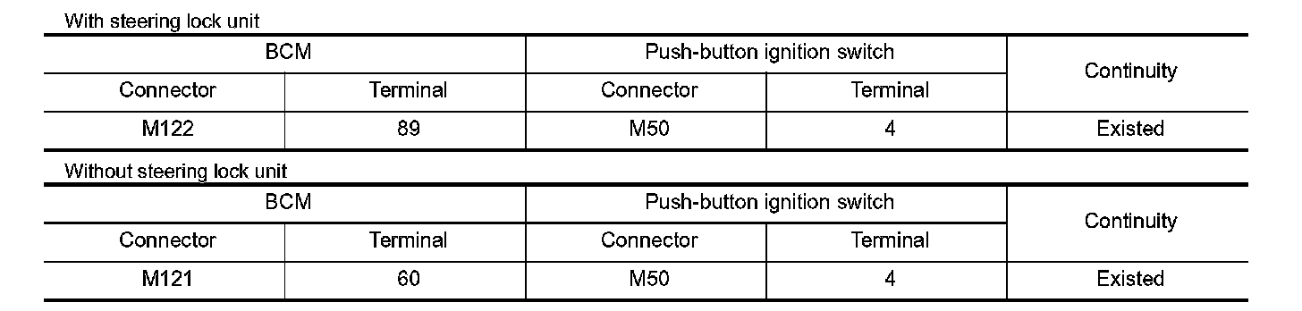2. Check continuity between BCM harness connector and push-button ignition switch harness connector.