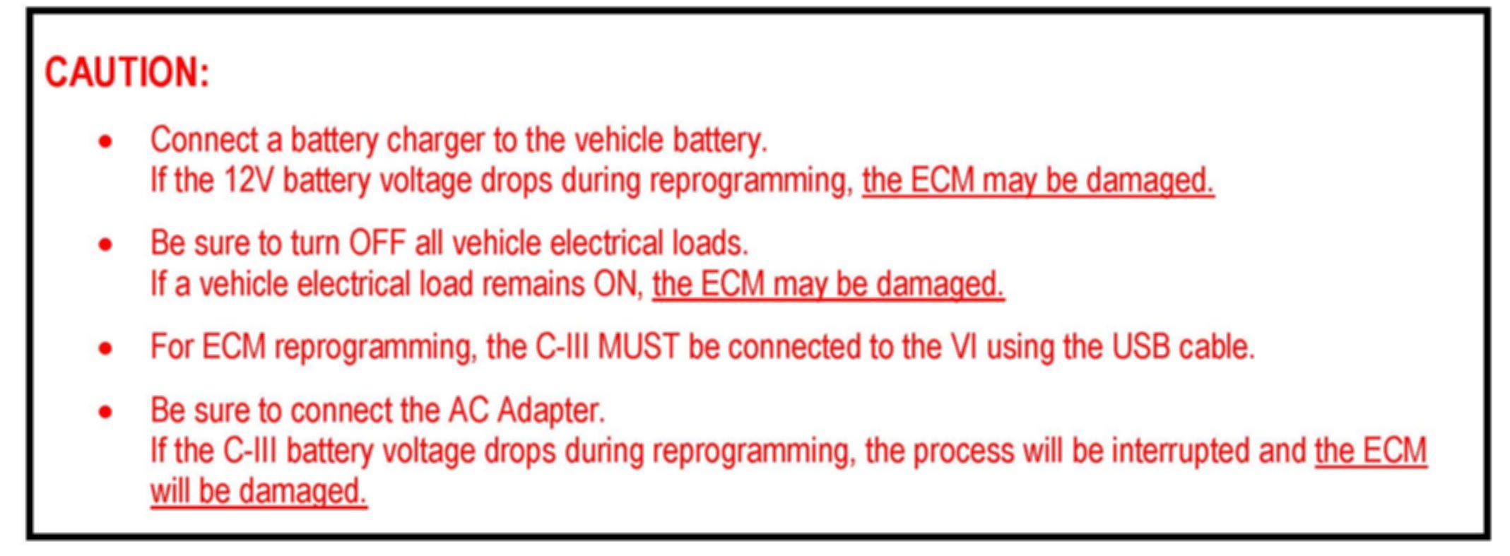 If there are two lines (two reprogramming options) on your C-III screen use the one that does not have the message Caution! Use ONLY with ITBXX-XXX.