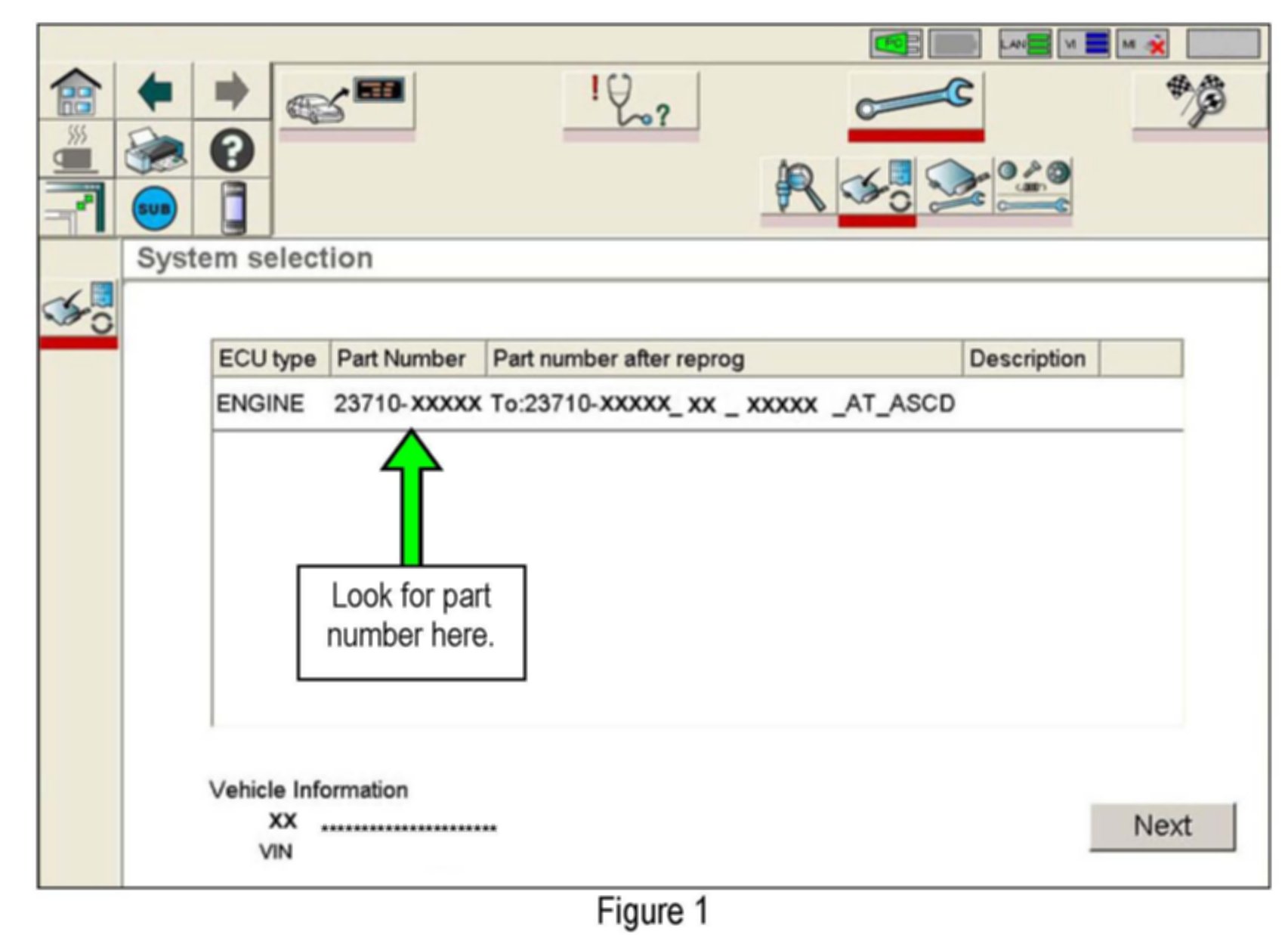 2. When you get to the ECM Reprogramming screen shown in Figure 1 confirm this bulletin applies as follows: