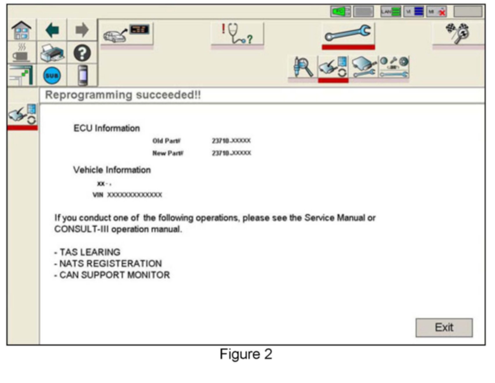 3. If this bulletin applies and you have performed ECM reprogramming the screen in Figure 2 (above) appears when reprogramming is complete.