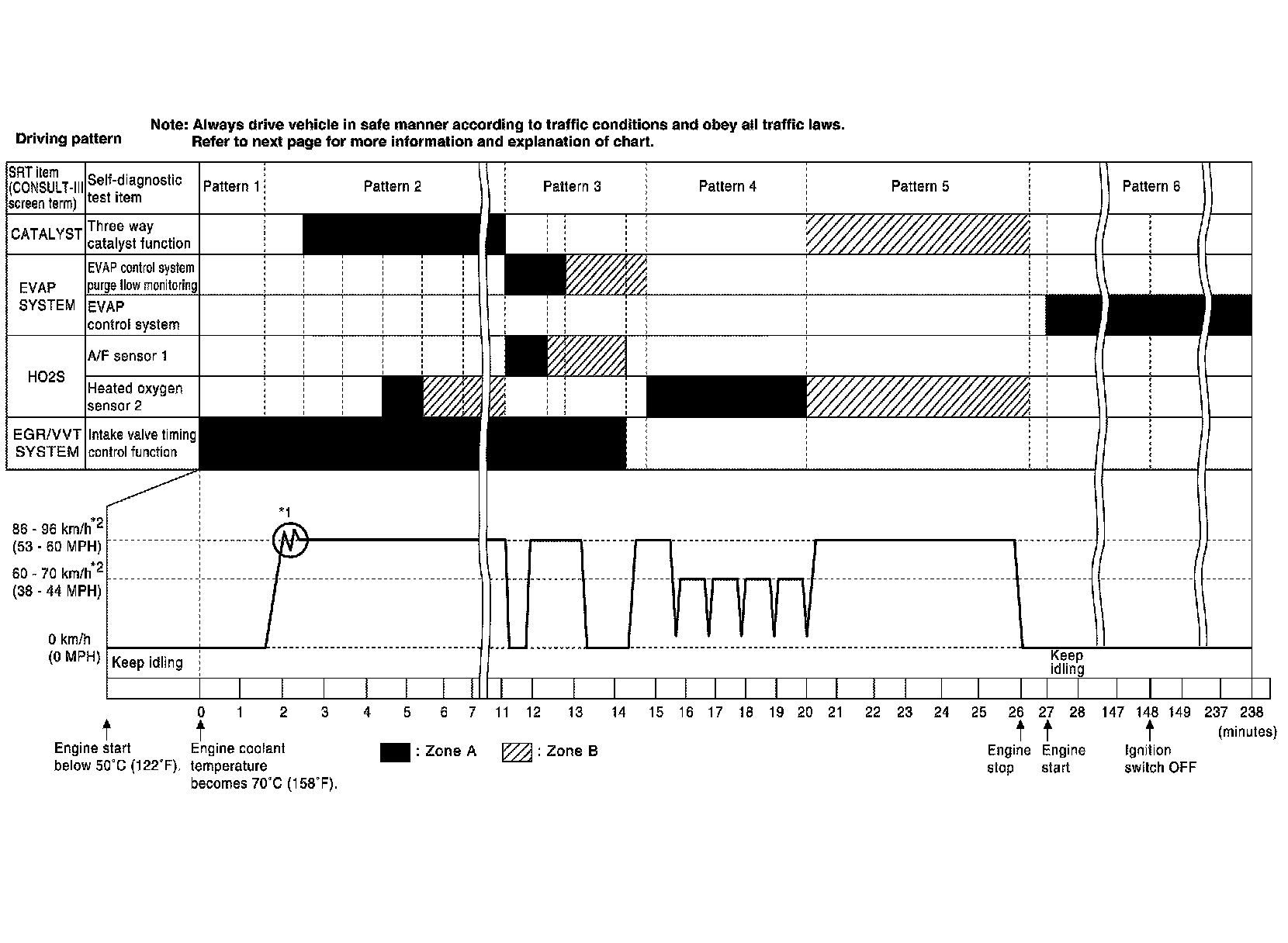 *1: Depress the accelerator pedal until vehicle speed is 90 km/h (56 MPH), then release the accelerator pedal and keep it released for more than 10 seconds. Depress the accelerator pedal until vehicle speed is 90 km/h