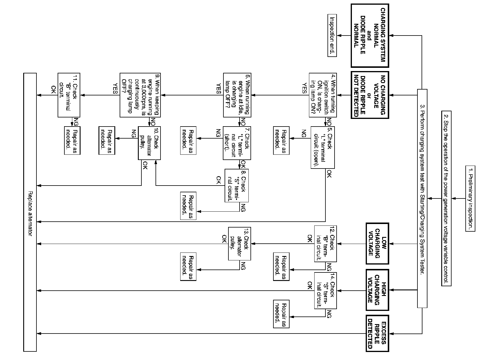 EXCESS RIPPLE DETECTED-Replace the alternator. Perform "DIODE RIPPLE" test again using Starting/Charging System Tester (SST: J-44373) to confirm repair.