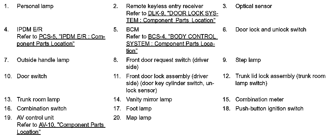 INTERIOR LIGHTING SYSTEM : Component Parts Location