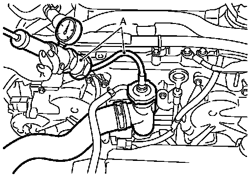 - To check for leakage, apply pressure to the cooling system with the radiator cap tester and radiator cap tester adapter (commercial service tool) (A).