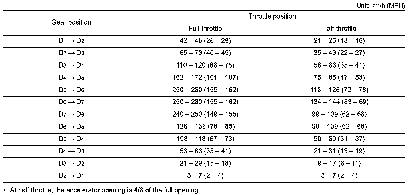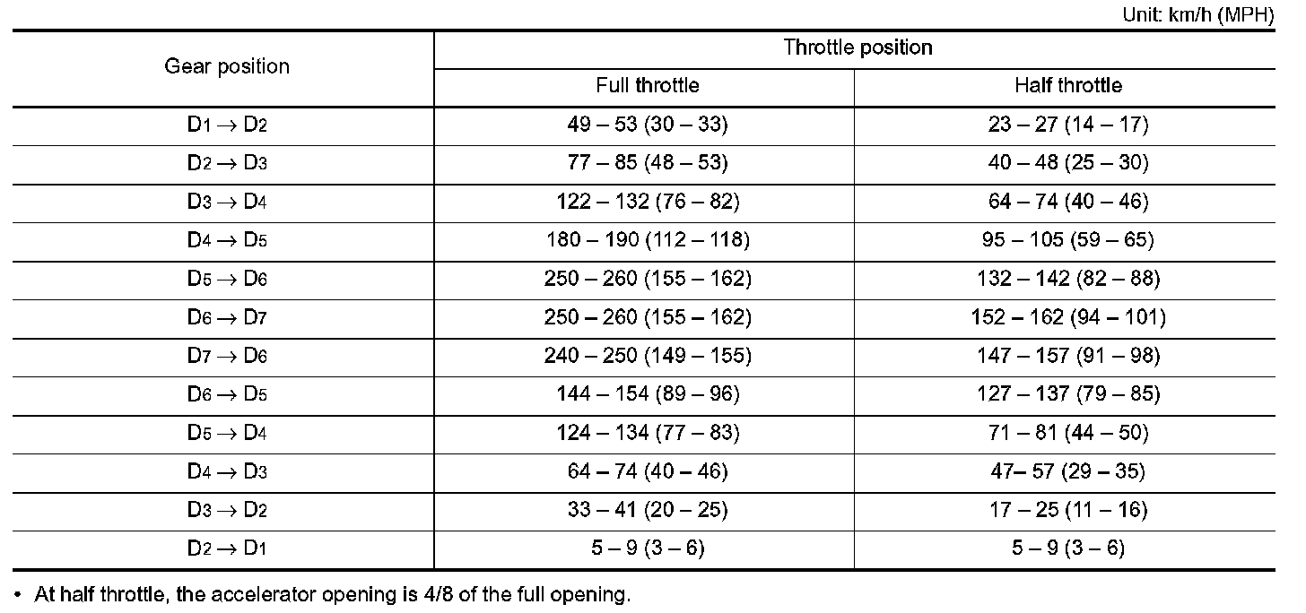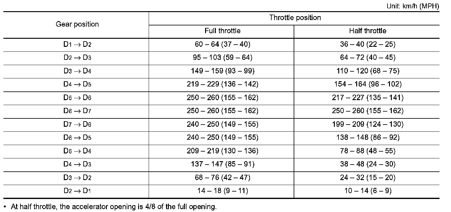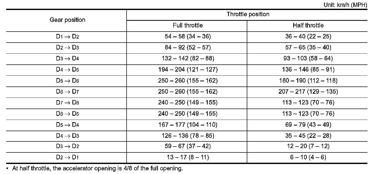 Vehicle Speed at Which Gear Shifting Occurs
