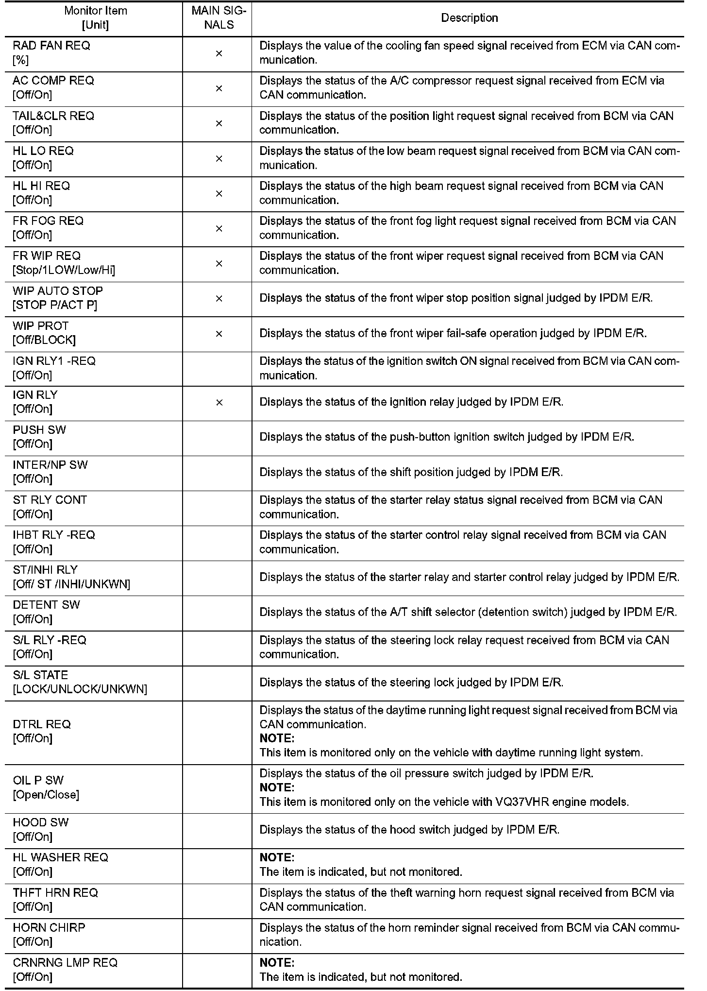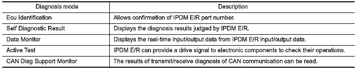 CONSULT-III performs the following functions via CAN communication with IPDM E/R.