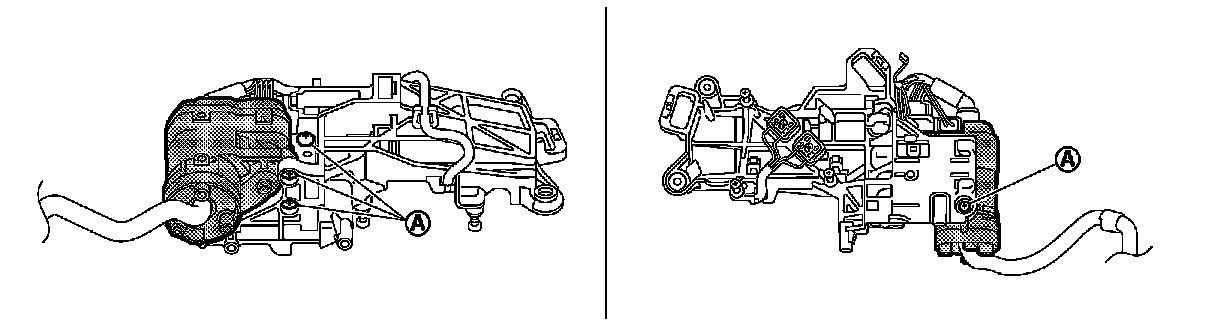 6. Remove the fixing screws (A), and then remove power fold unit from actuator bracket.