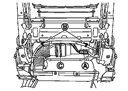 6. Cut mounting band (C) of seatback thermal electric unit.
