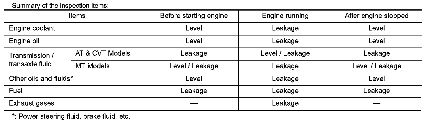 The following are procedures for checking fluid leakage, lubricant leakage.
