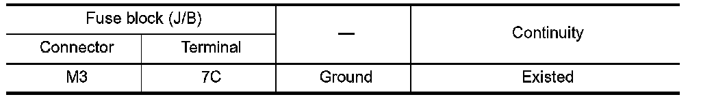 2. Check continuity between fuse block (J/B) harness connector and ground.