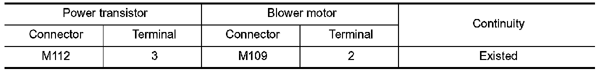 3. Check continuity between power transistor harness connector and blower motor harness connector.