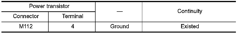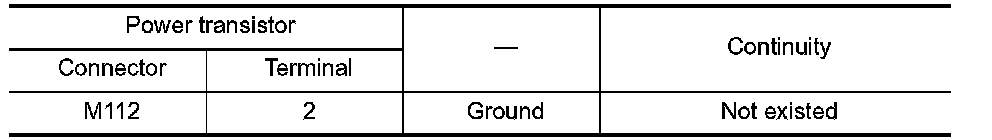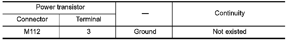 Check continuity between power transistor harness connector and ground.