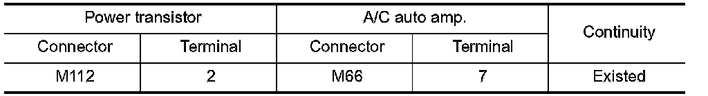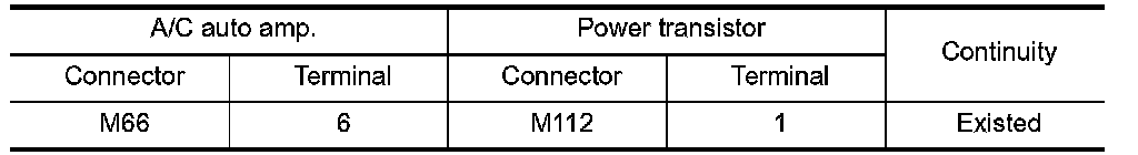 4. Check continuity between A/C auto amp. harness connector and power transistor harness connector.