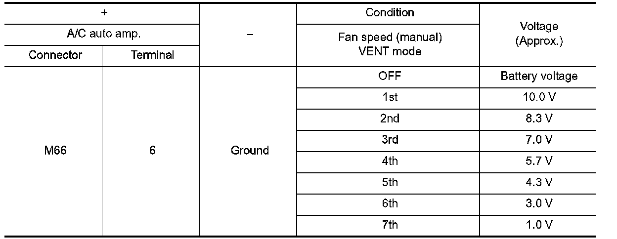 4. Change fan speed from 1 to 7, and check voltage between power transistor harness connector and ground.
