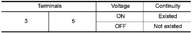 2. Check continuity between blower relay terminals 3 and 5 when the voltage is supplied between terminals 1 and 2.