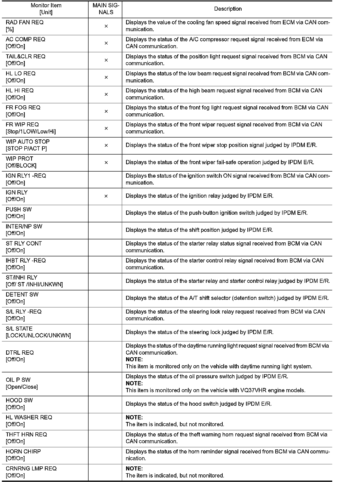 CONSULT-III performs the following functions via CAN communication with IPDM E/R.