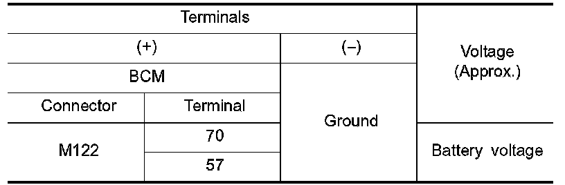 3. Check voltage between BCM harness connector and ground.
