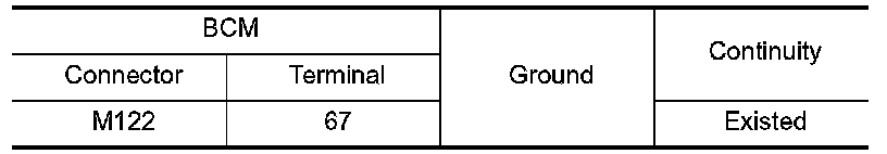 Check continuity between BCM harness connector and ground.