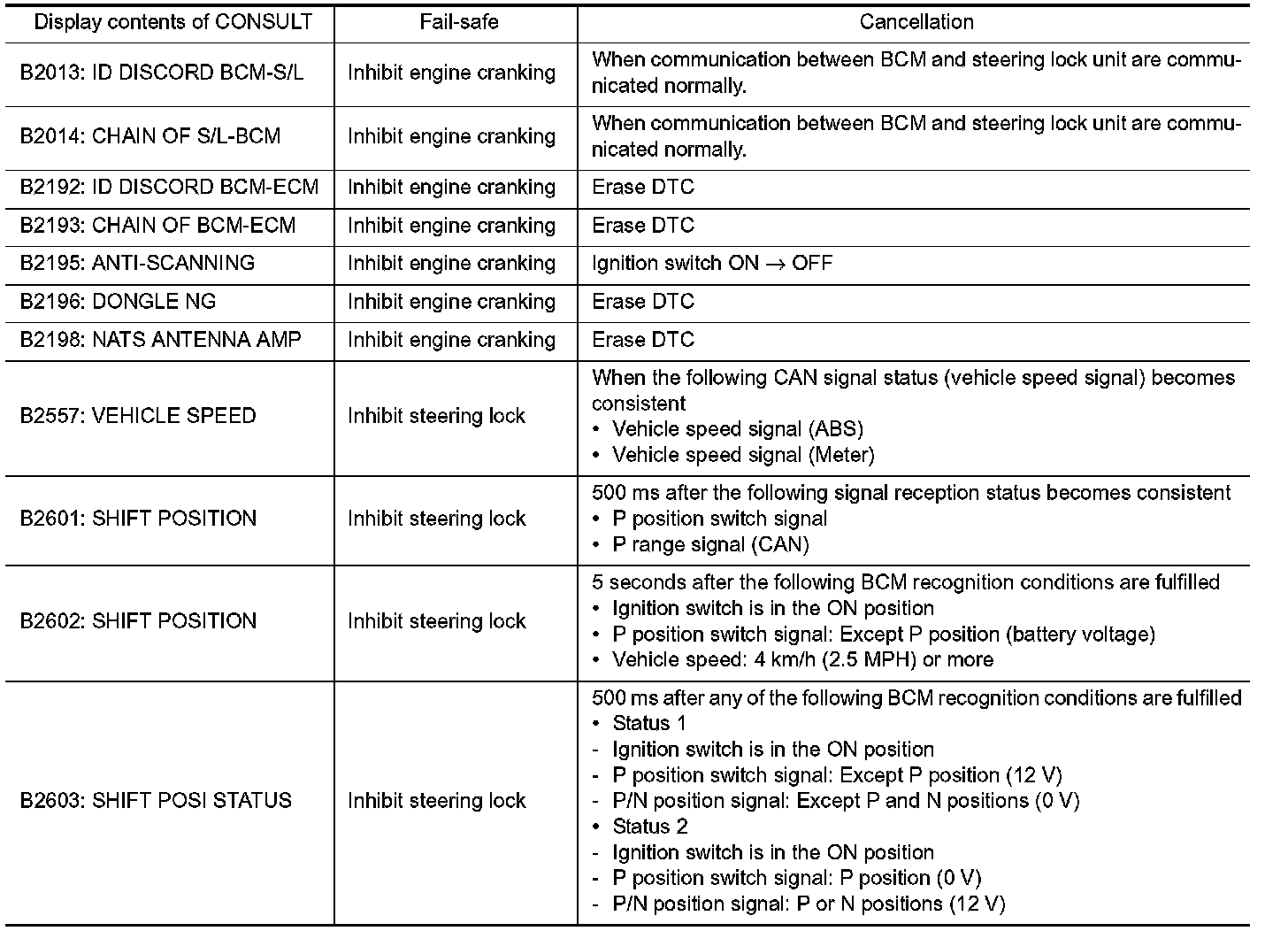If voltage of battery power supply lower, BCM maintains combination switch reading to the status when input voltage is less than approximately 9 V.