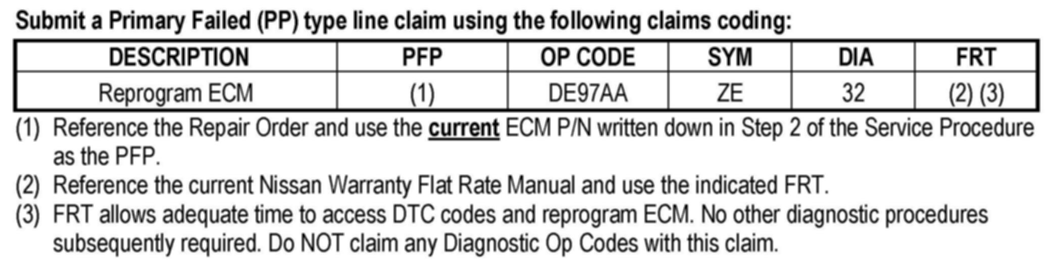 ^ Diagnosis and repairs beyond ECM reprogramming are not covered by this bulletin.