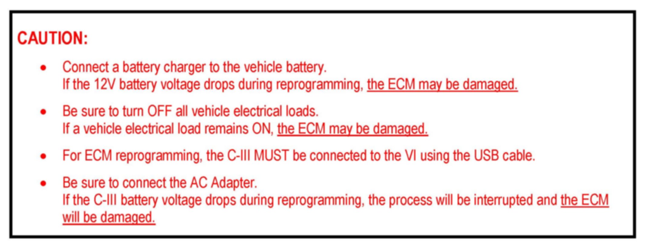 If there are two lines (two reprogramming options) on your C-III screen, use the one that does not have the message "Caution! Use ONLY with ITBXX-XXX".