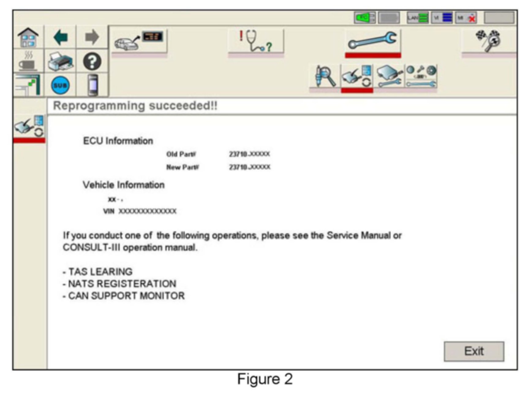 3. If this bulletin applies and you have performed ECM reprogramming, the screen in Figure 2 (below) appears when reprogramming is complete.