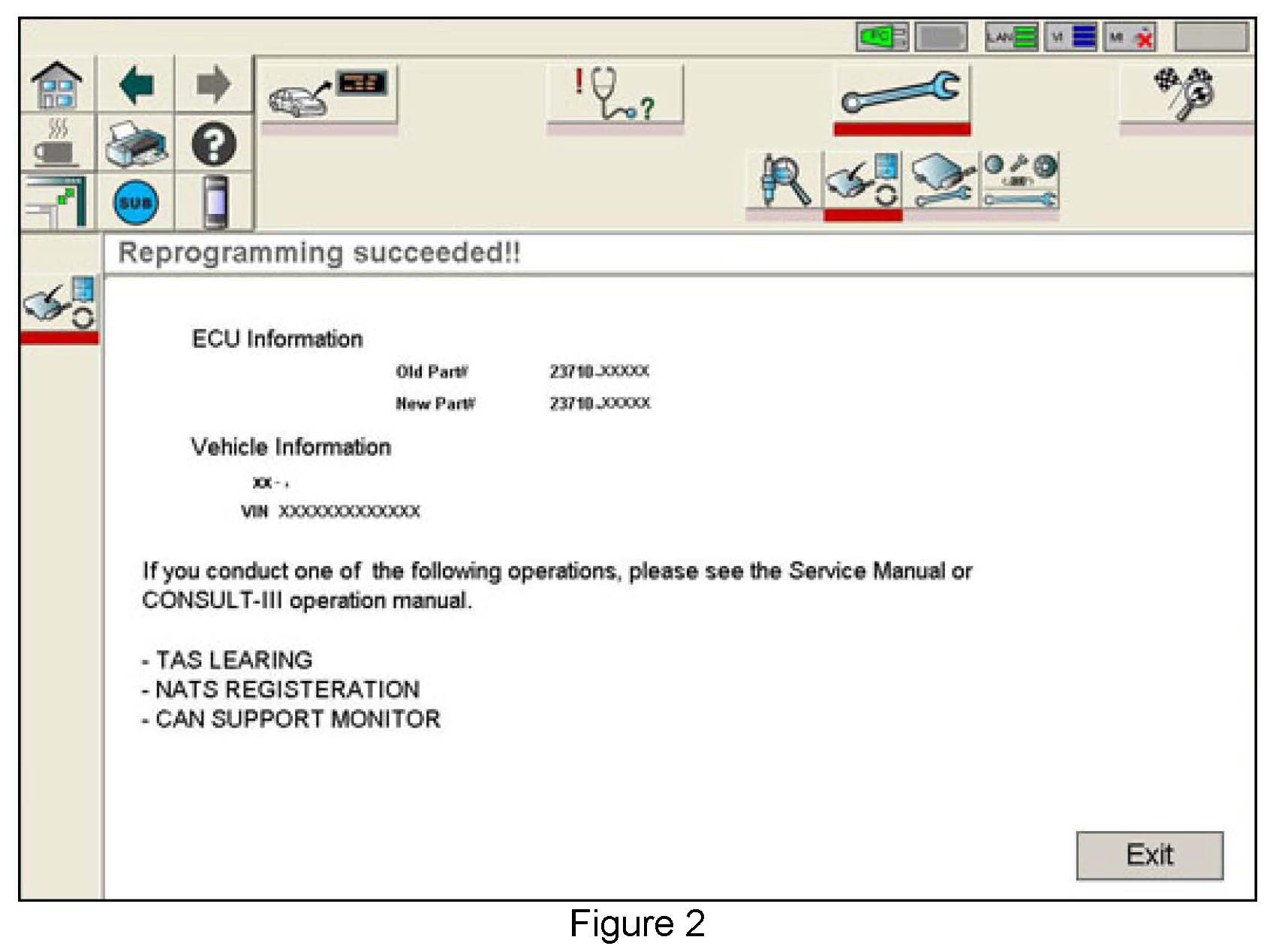 3. If this bulletin applies and you have performed ECM reprogramming the screen in Figure 2 displays when reprogramming is complete.