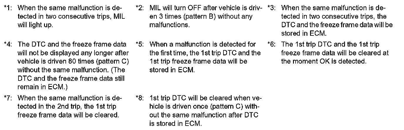 - *2: Clear timing is when the same malfunction is detected in the 2nd trip.