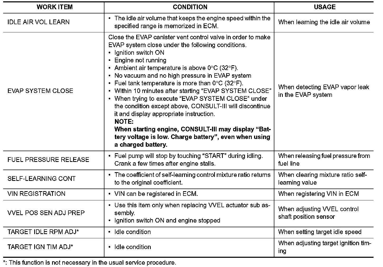 - If the ignition switch stays ON after repair work, be sure to turn ignition switch OFF once. Wait at least 10 seconds and then turn it ON (engine stopped) again.