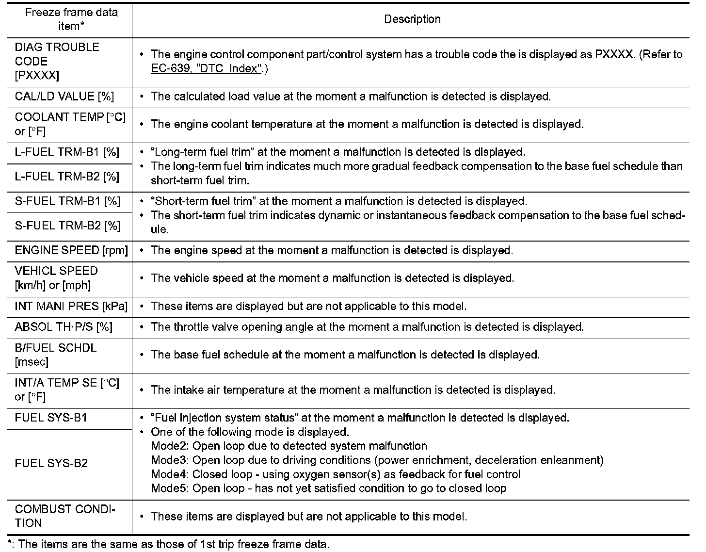 Freeze Frame Data and 1st Trip Freeze Frame Data