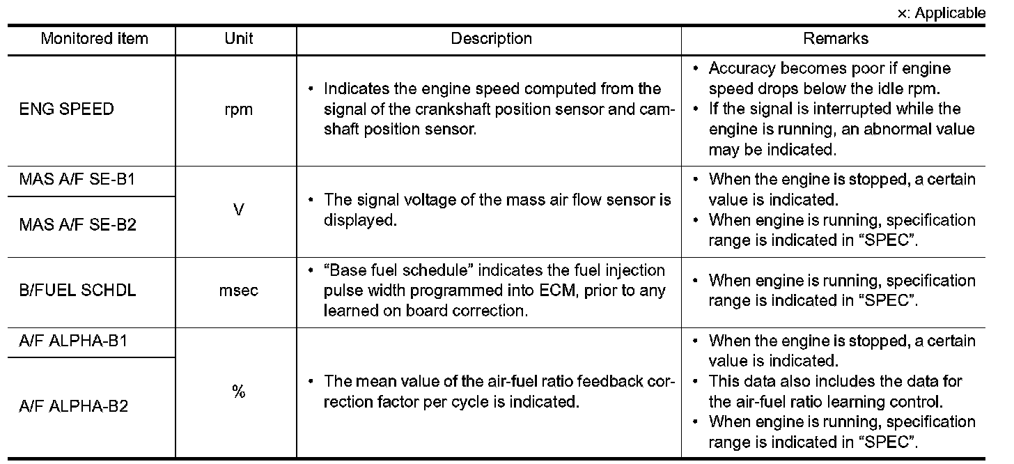 - If "TIME" is neither "0" nor "1t", the DTC occurred in the past and ECM shows the number of times the vehicle has been driven since the last detection of the DTC.